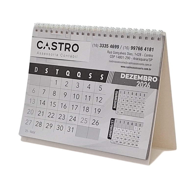 Calendário de mesa personalizado, funcional e ideal para divulgação da marca durante todo o ano.