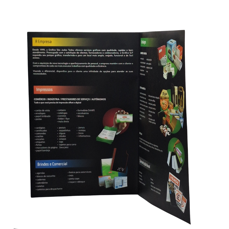 Catálogos impressos personalizados, ideais para divulgação de produtos, serviços, apresentações comerciais, feiras, eventos corporativos e ações institucionais.