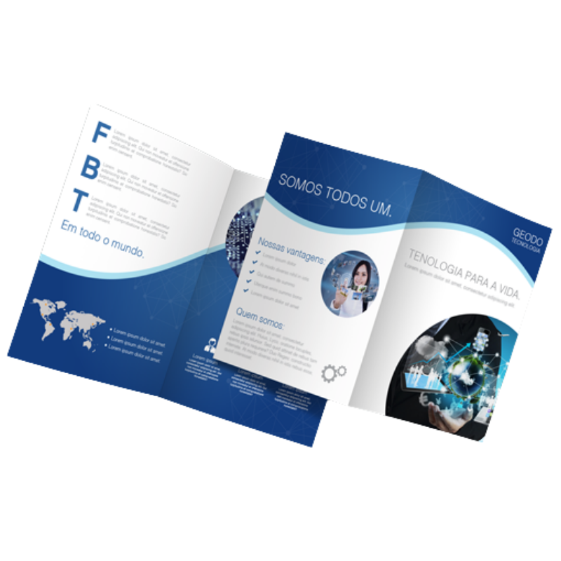 Folder personalizado com 1 dobra, ideal para apresentar informações de forma objetiva e organizada.